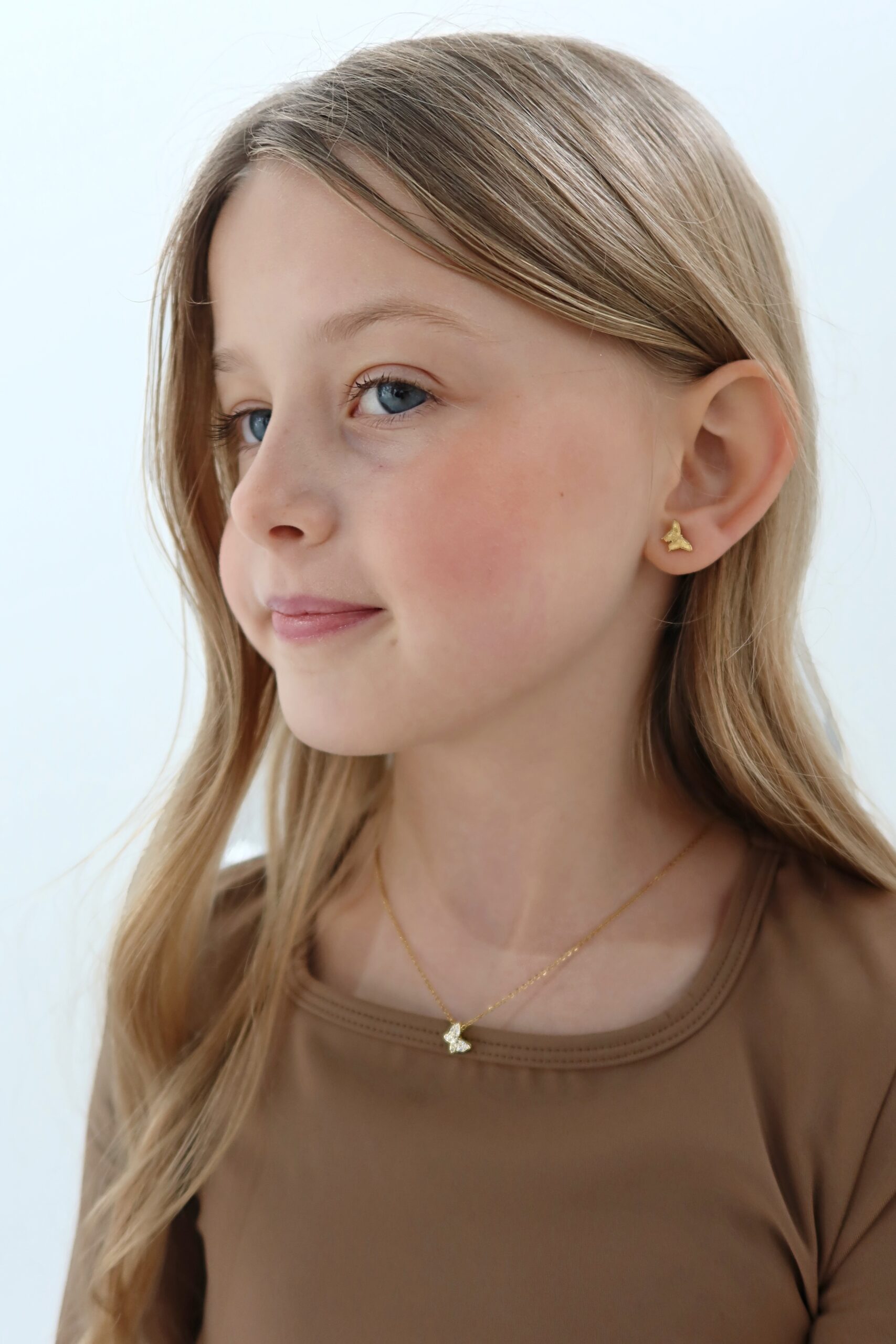 Let their imagination flutter with our Butterfly Dream Studs – sweet butterfly-shaped earrings designed with delicate gold detailing for the perfect everyday sparkle. Made from durable stainless steel, these studs are gentle on sensitive ears and built to last.