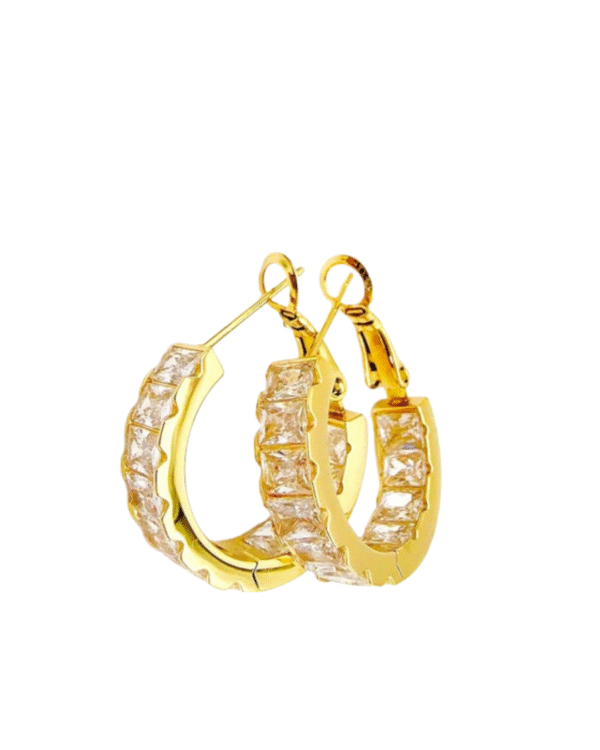 Light-catching sparkle! Our Radiant Crystal Hoops feature a timeless 20mm silhouette crafted from durable stainless steel with a luxurious gold-colour finish. Each hoop is adorned with radiant CZ crystals all the way around, giving a stunning, high-shine sparkle from every angle.