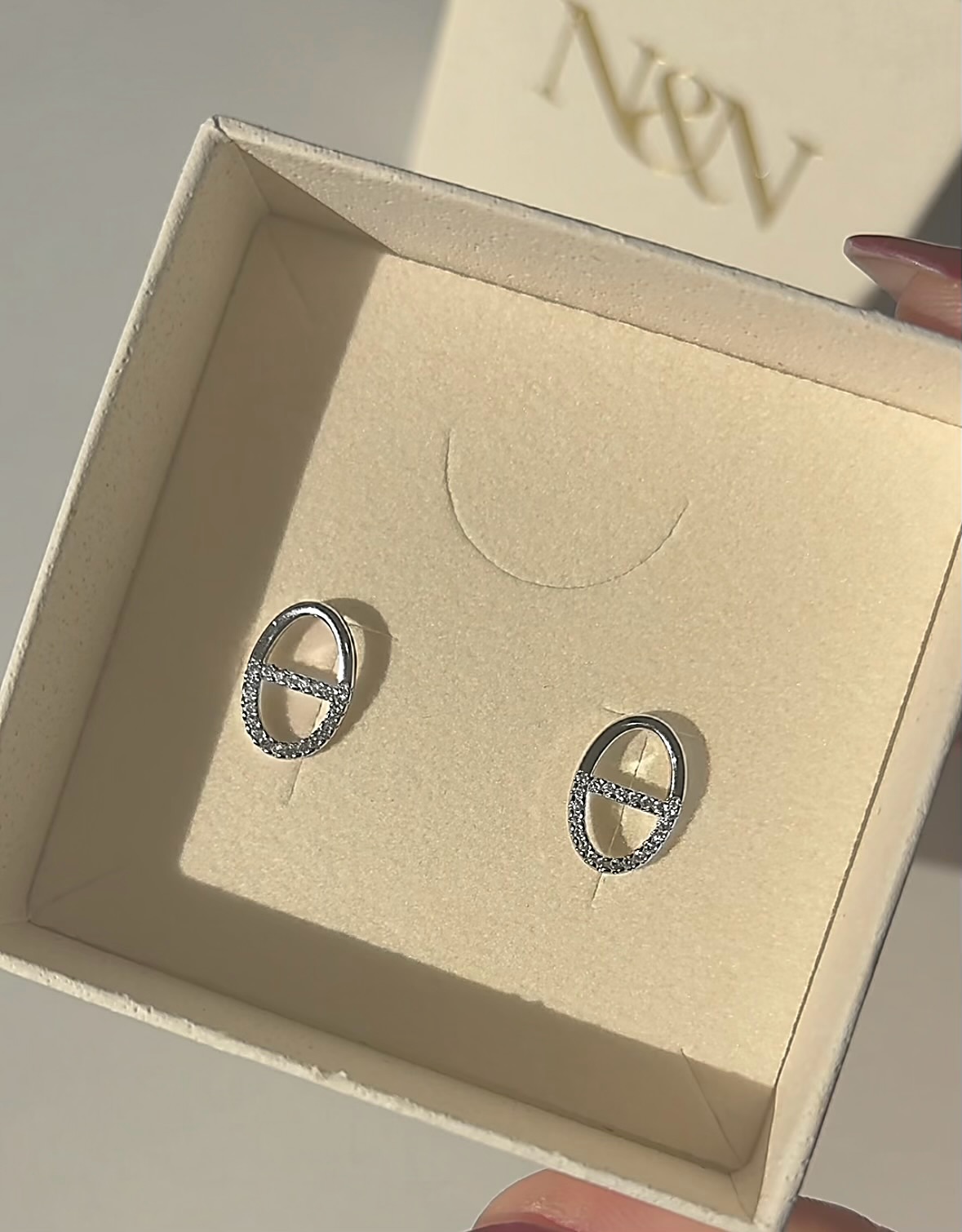 Elevate your everyday style with the Luxe Stud Earrings—oval silver studs that are half-encrusted with radiant CZ stones, these designer-inspired earrings strike the perfect balance between minimalism and glamour