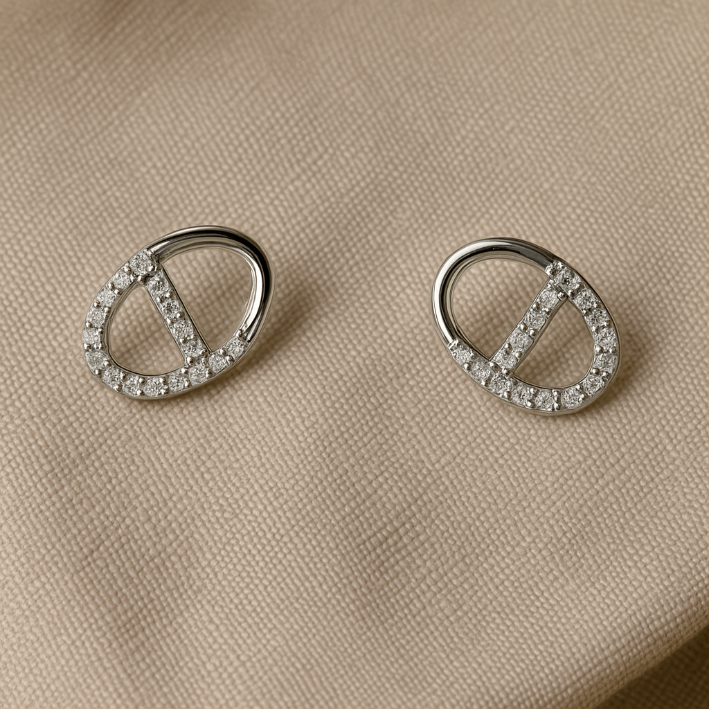 Inspired by high-end designer aesthetics, these earrings strike the ideal balance between minimalism and luxury. Their clean lines and contemporary shape make them versatile enough for daily wear, while the delicate sparkle ensures they shine just as brightly for special occasions or evening events.